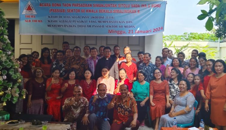 PATROLI NEWS. COM, Medan-Ucapan syukur kepada Tuhan Yesus Kristus atas penyertaan dalam melewati tahun 2023 hingga bisa diberikan nafas kehidupan di tahun 2024 adalah wujud nyata kebaikan Tuhan kepada kita. Berkat Tuhan yang luar biasa itu dimaknai Punguan Simanjuntak Sitolu Sada Ina dohot Boruna(PSSSI-B) Sektor 60 Kwala Bekala Simalingkar B dalam acara syukuran Bona Taon, Minggu (21/01) di Rumah Keluarga H Munte br Simanjuntak Jalan Bunga Rampai II Gang Teratai.