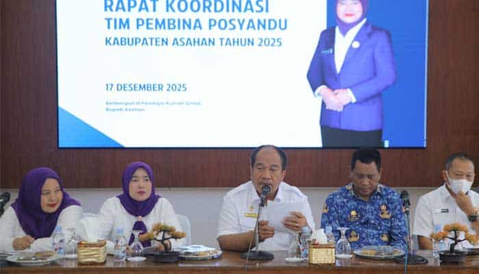 Asahan – Pemerintah Kabupaten Asahan mengonsolidasikan peran Posyandu sebagai simpul integrasi layanan sosial dasar melalui Rapat Koordinasi Tim Pembina Posyandu Kabupaten Asahan Tahun 2025. Kegiatan ini dibuka langsung oleh Bupati Asahan Taufik Zainal Abidin, S.Sos., M.Si. di Pendopo Rumah Dinas Bupati Asahan, sebagai langkah penyesuaian kebijakan daerah terhadap regulasi nasional dan kebutuhan layanan masyarakat, Rabu (17/12/2025).