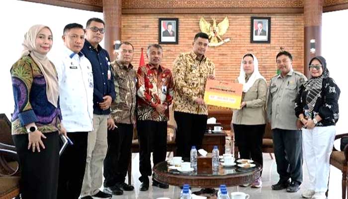 Bantuan itu diserahkan secara simbolis oleh Wakil Walikota Palu, Imelda Liliana Muhidin, di Kantor Gubernur Sumut, Jalan Diponegoro Medan, Kamis (11/12/2025).
