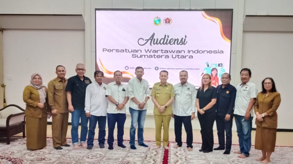 Hal itu disampaikan A. Fatoni saat menerima kunjungan audiensi Panitia Natal PWI Sumut bersama Ketua PWI Sumut Farianda Putra Sinik yang sekaligus sebagai Pelindung.Sedangkan dari jajaran panitia hadir Josmarlin Tambunan (Penasehat), Eris Juleta Napitupulu (Anggota Penasehat) Halomoan Samosir (Ketua Panitia), Charles Daulay (Sekretaris), Sumuang Nababan (Bendahara) dan Anton Siahaan (Koordinator Seksi Publikasi).Gubsu menerima panitia Natal PWI Sumut di rumah Dinas Gubernur Jalan Sudirman Nonor 41 Medan Senin (25/11/2024), Jam 20.00 Wib.