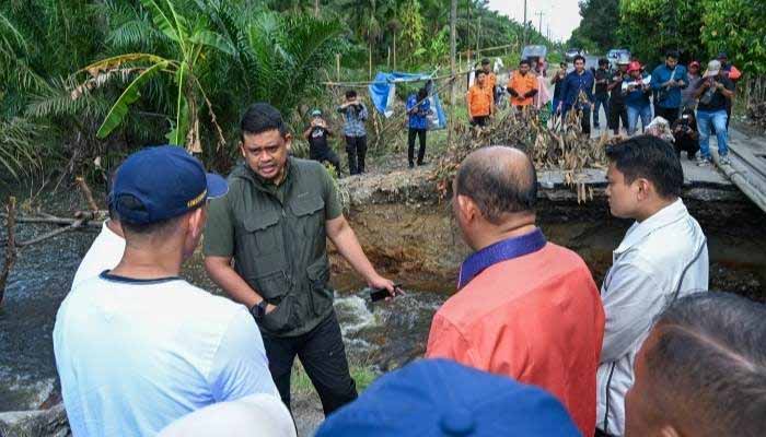 Dari Jatisari, Bobby melanjutkan peninjauan ke ruas jalan menuju Tanjungberingin yang putus akibat terjangan banjir beberapa waktu lalu. Jalan ini merupakan akses alternatif warga dari Tanjungpura dan Padangtualang menuju Stabat. Kondisi jalan yang runtuh diamati langsung untuk percepatan penanganan.
