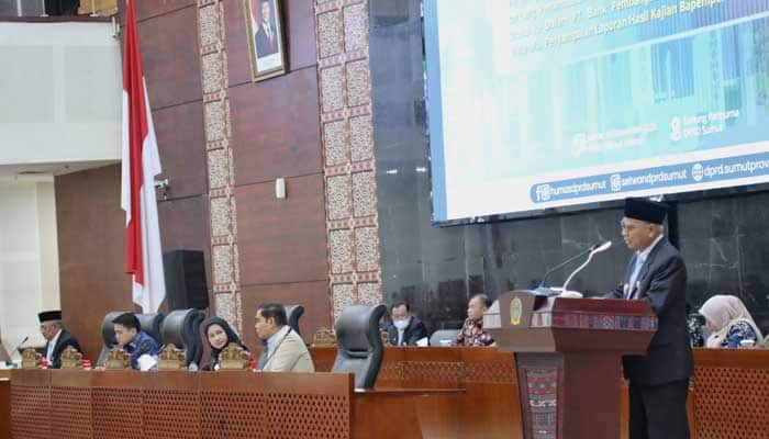 Hadir dalam rapat paripurna tersebut Pj Sekdaprov Sumut Sulaiman Harahap, pimpinan DPRD Sumut, serta para kepala organisasi perangkat daerah (OPD) Sumut. (Pnc-1)