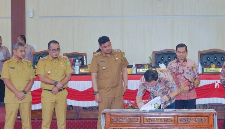 Rapat paripuna dipungkasi dengan penandatanganan persetujuan bersama antara Wali Kota Medan Bobby Nasution dengan Ketua DPRD Medan Hasyim SE disaksikan Wakil Wali Kota H Aulia Rachman, Sekda Kota Medan Wiriya Alrahman, tiga Wakil Ketua DPRD Medan yakni H Ihwan Ritonga, H Rajuddin Sagala dan HT Bahrumsyah, anggota dewan serta pimpinan OPD di lingkungan Pemko Medan serta para camat.(Pnc-1)