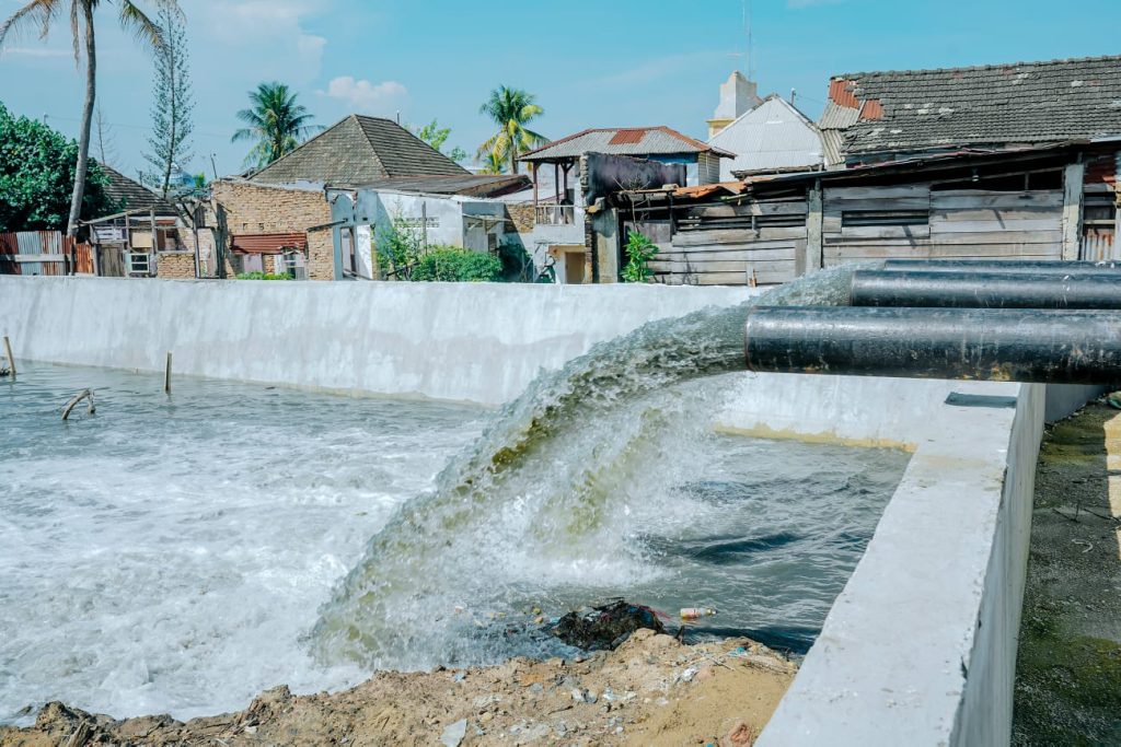 “Untuk mengalirkan kembali air pasang ke laut tentunya harus dinaikkan ke atas melewati tanggul rob dengan menggunakan pompa. Makanya dibangunlah rumah pompa ini. Alhamdulillah, sejak rumah pompa air ini selesai dibangun, kawasan ini tidak pernah lagi terjadi banjir,” ungkapnya.