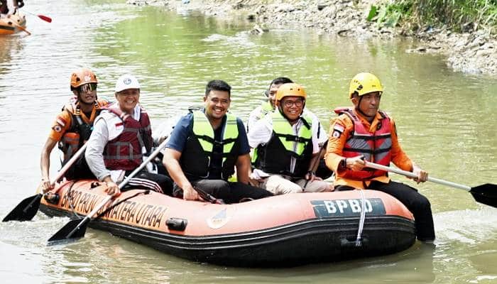 Dalam aksi itu, para peserta menyusuri aliran Sungai Deli menggunakan perahu karet milik BNPB dan BPBD Sumut serta Kota Medan, sambil memungut sampah yang mengendap di aliran sungai dengan alat pengapit.